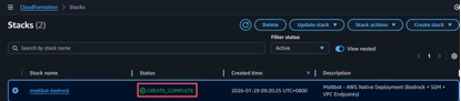 部署通常需要5-10分钟,可以到AWS CloudFormation控制台查看进度。