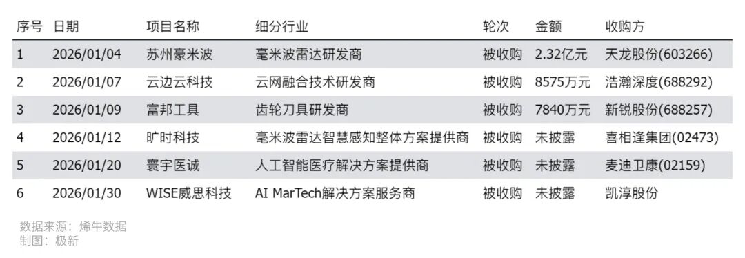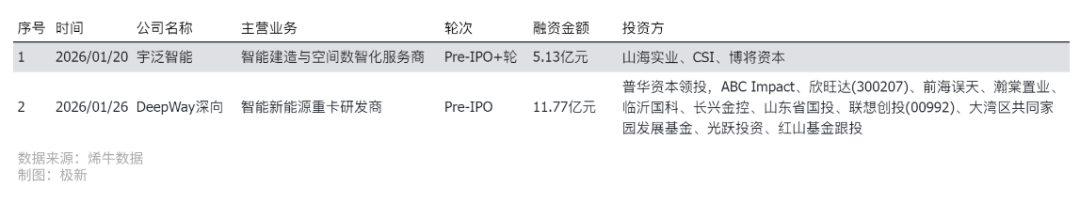 图七:2026年1月我国人工智能领域Pre-IPO事件(数据来源:烯牛数据)