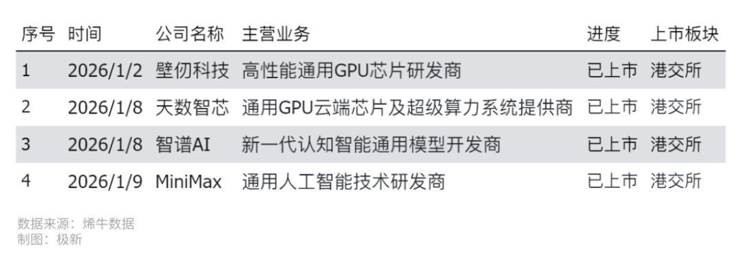 图六:2026年1月我国人工智能领域IPO事件(数据来源:烯牛数据)