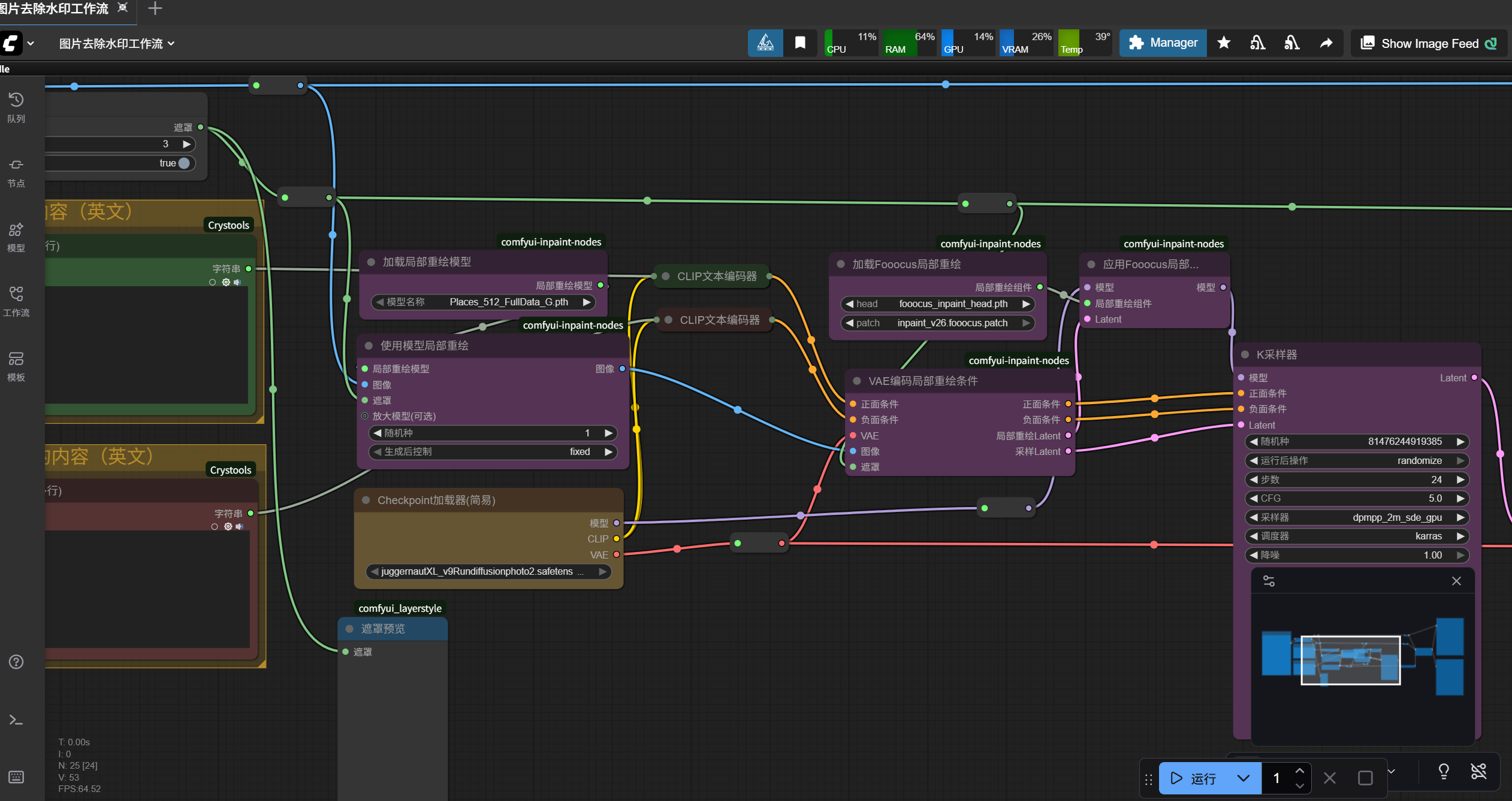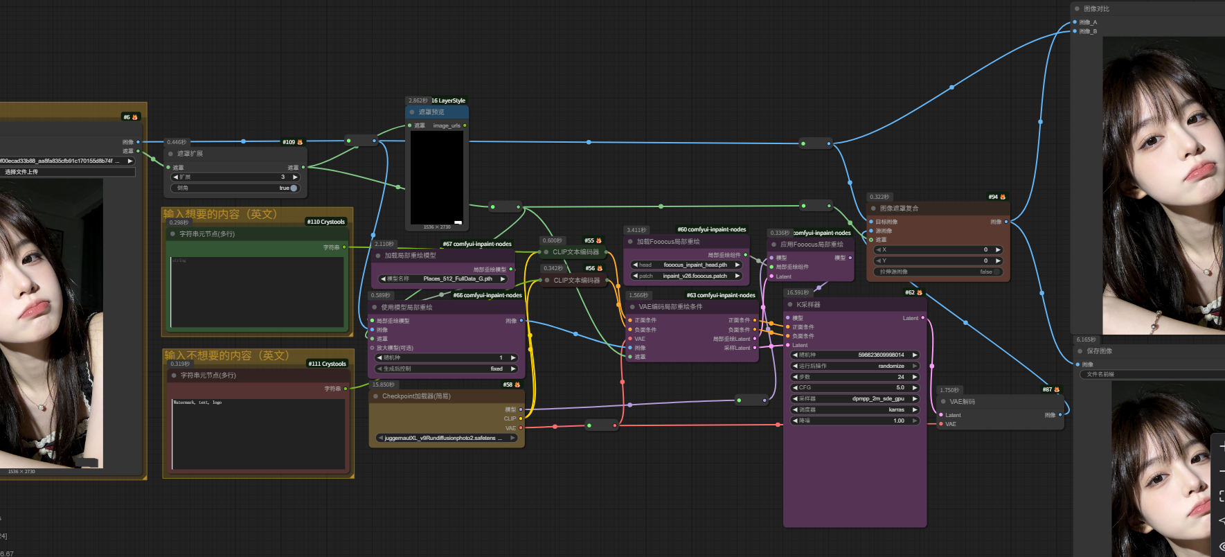 很多工作流、很多模型都可用来去水印,但是这里我推荐使用别人做的这个SDXL模型工作流,如图所示: