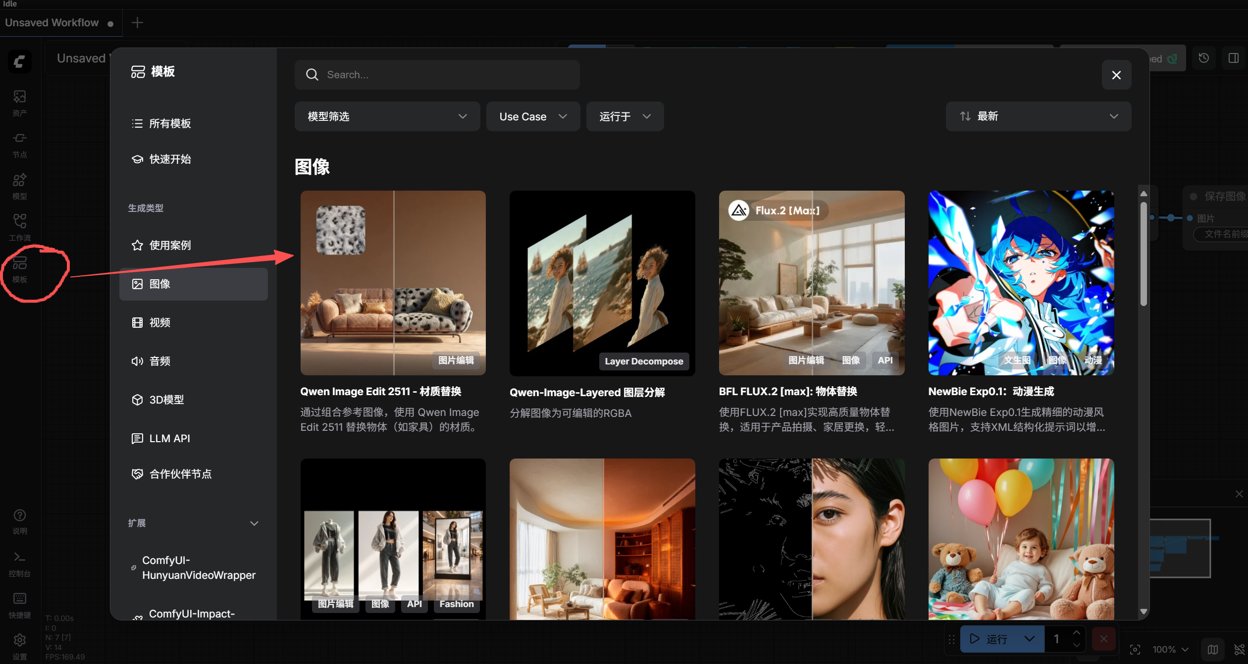 点击进入后在右边有个新建工作流、快速模板,点击进入后即可使用。
