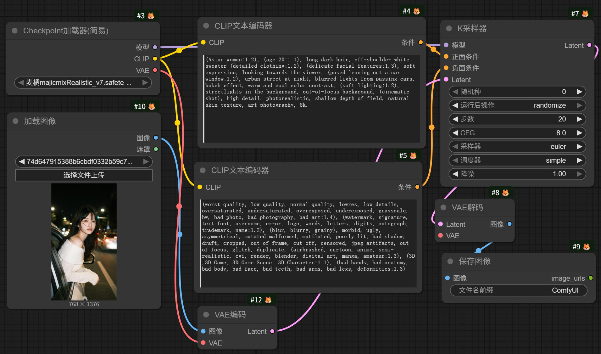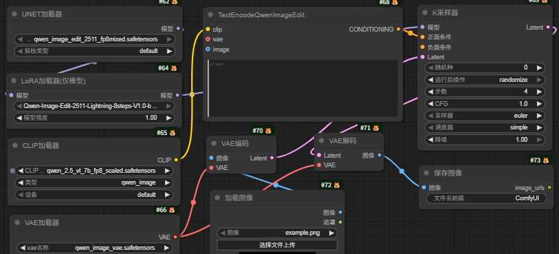 一个简易的Qwen-image-edit-202511模型图片编辑工作流如图所示: