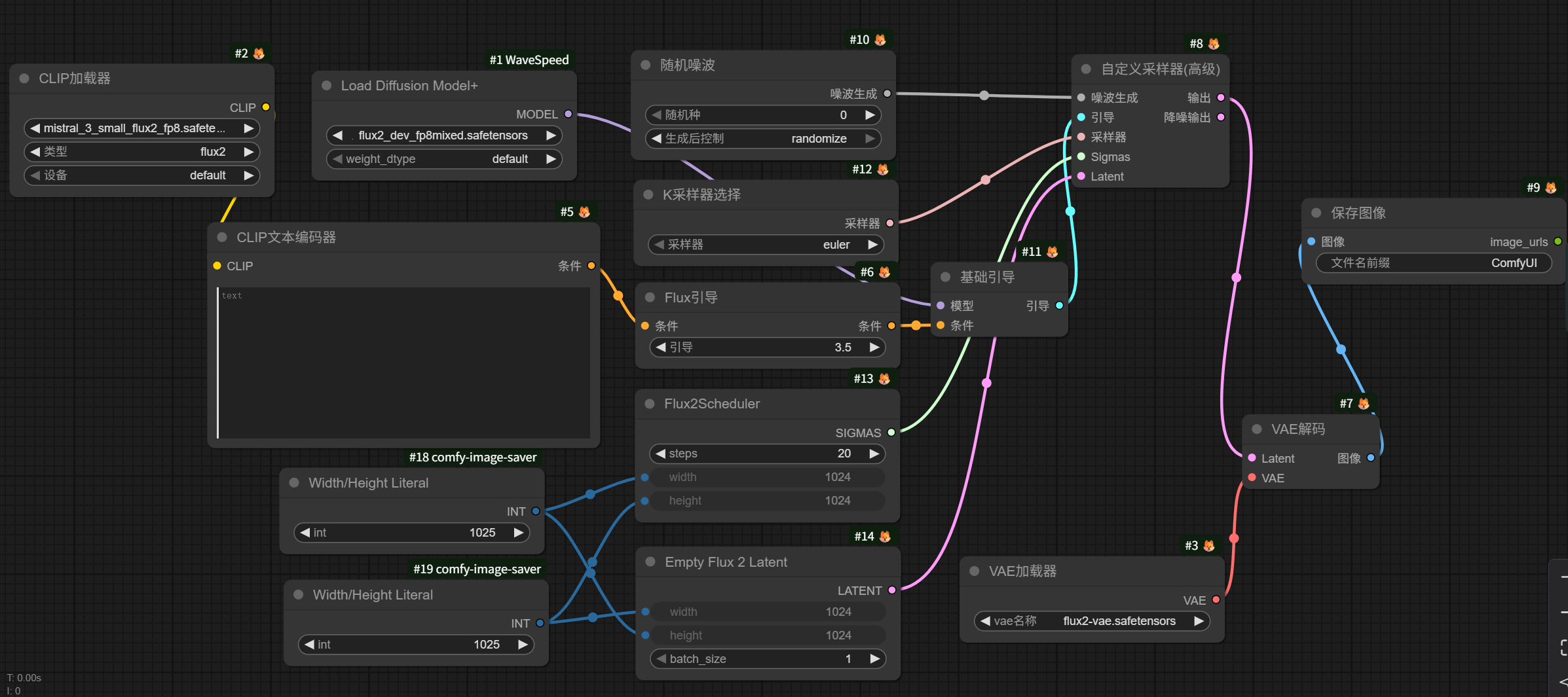 一个基本的FLUX.2模型文生图工作流如图所示: