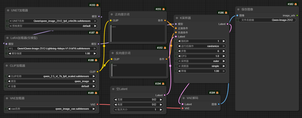 一个简易的Qwen-Image-2512模型文生图工作流如图所示: