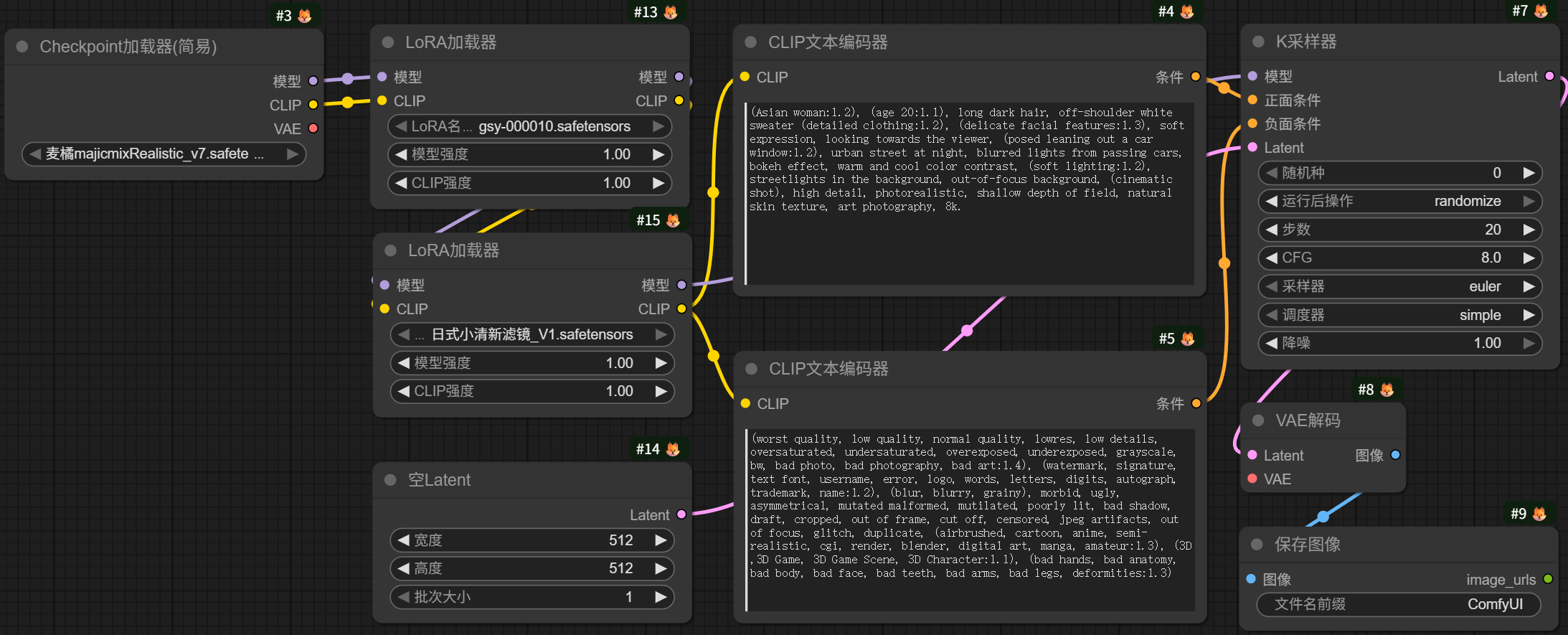 ComfyUI通过添加节点、连接节点等操作构建的模型工作流来绘制图像。