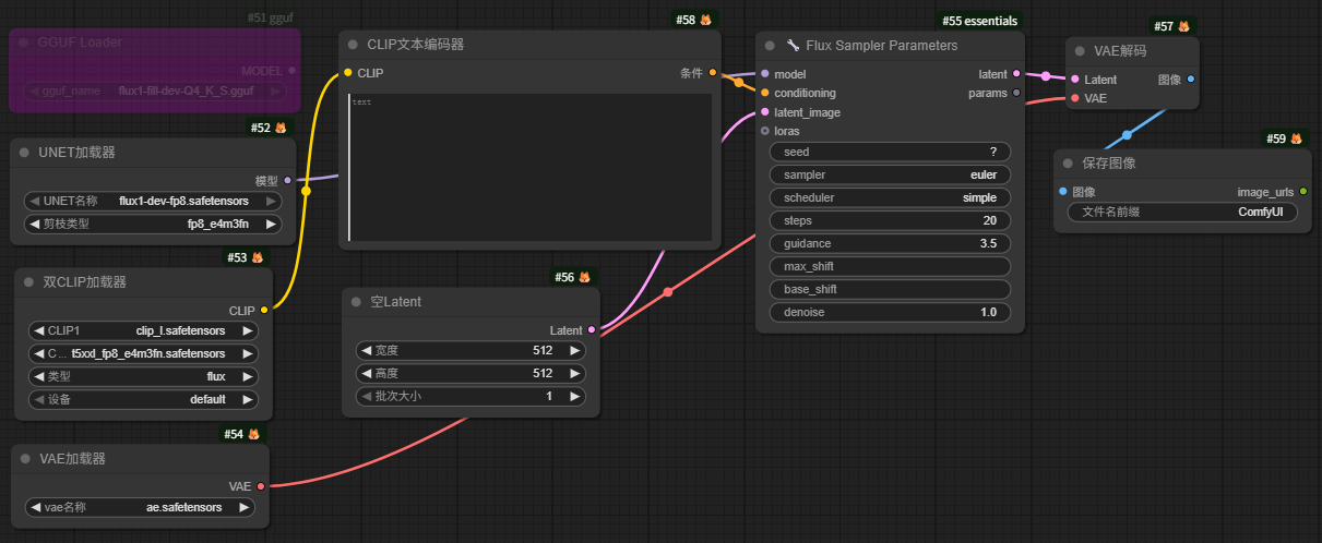 一个基本的FLUX.1模型文生图工作流如图所示: