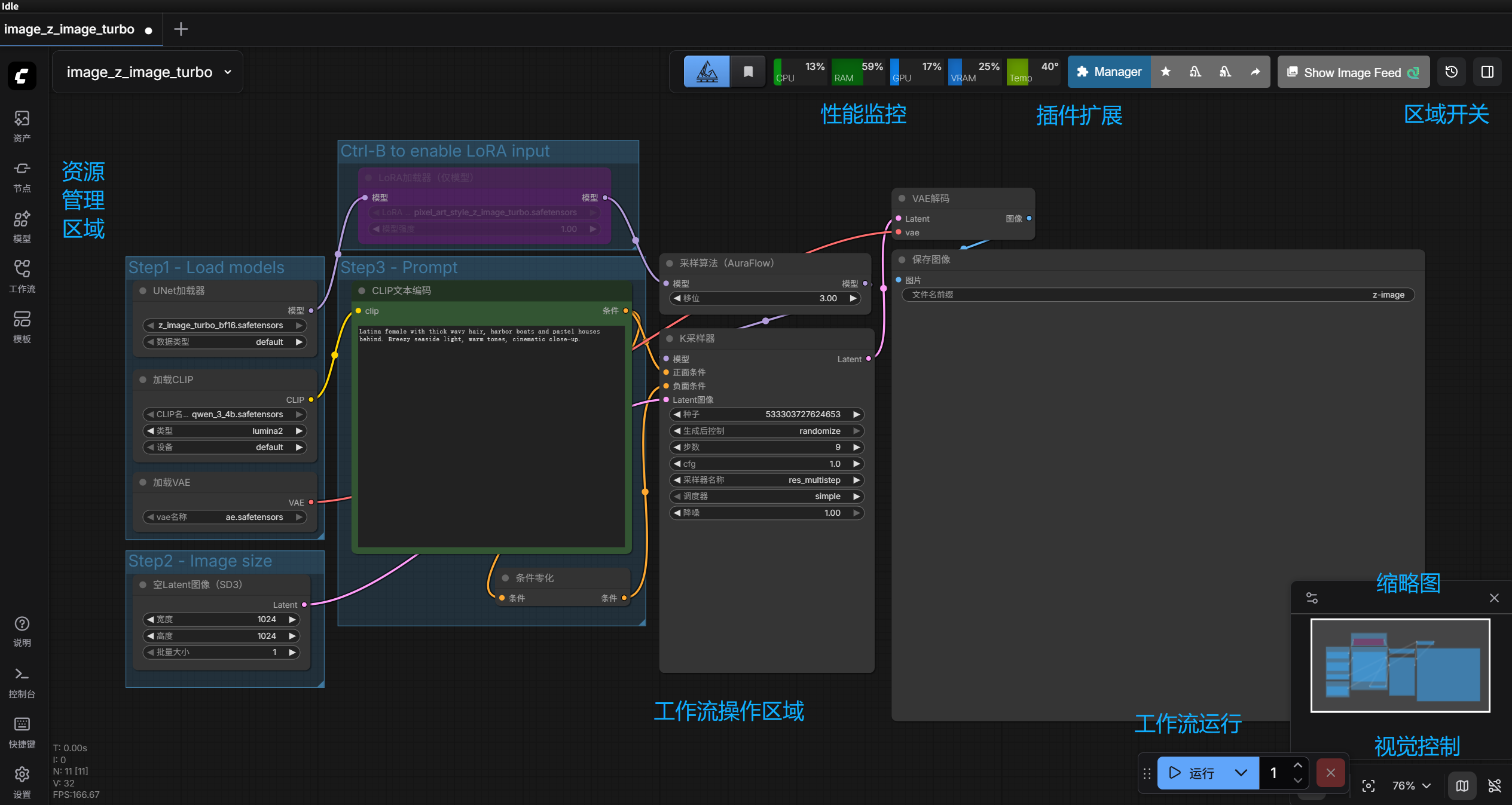 Z-Image-Turbo是高效精简版,特性8步出图,快速绘画。