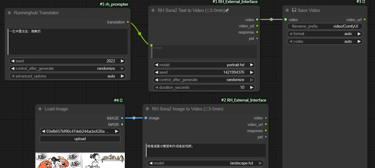 一个简易Sora2文生视频和图生视频工作流如图所示: