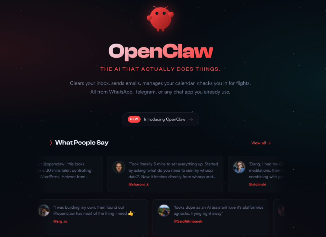 Openclaw 刻意去掉了“Bot”这个后缀,我想也是为了与 ChatGPT、Claude 等纯对话模型划清界限。