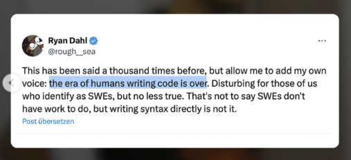 刷到一个新闻,准确来说是一则 X 的帖子,来自 Node.js 的创始人Ryan Dahl: