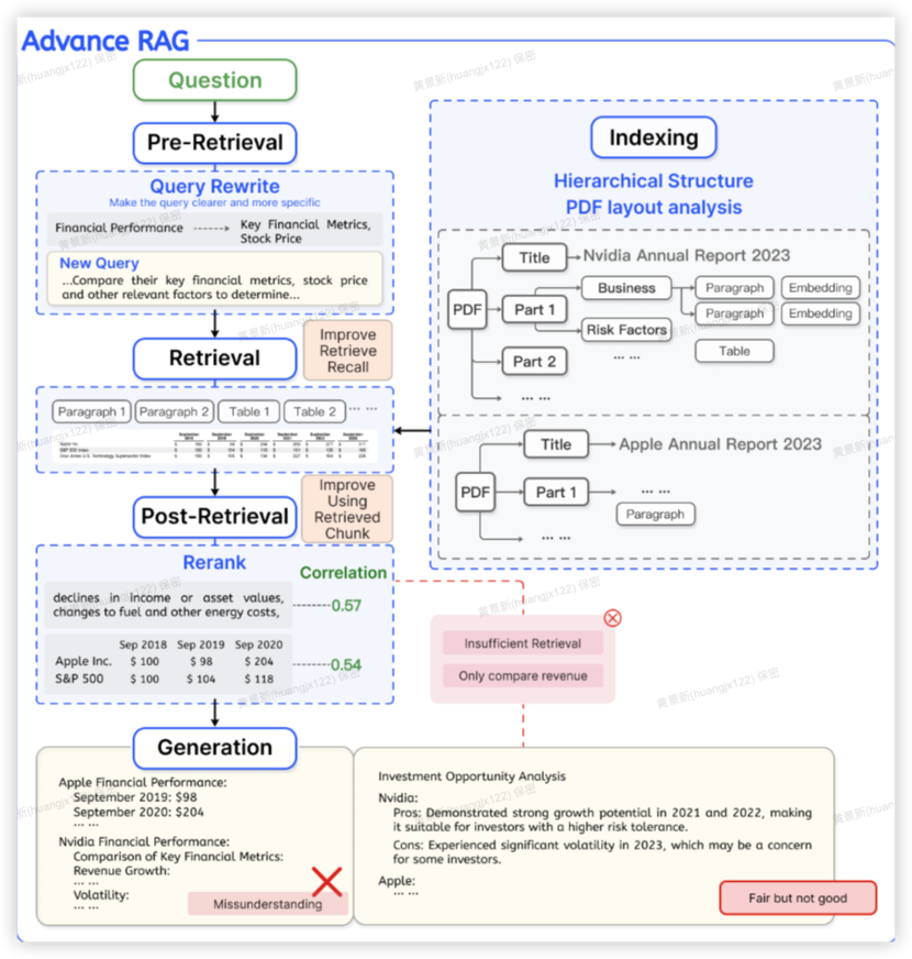 在检索前后增加预处理(如查询重写)和后处理(如结果重排),提升信息相关性。