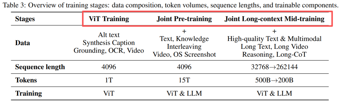 Table 3: 预训练三阶段