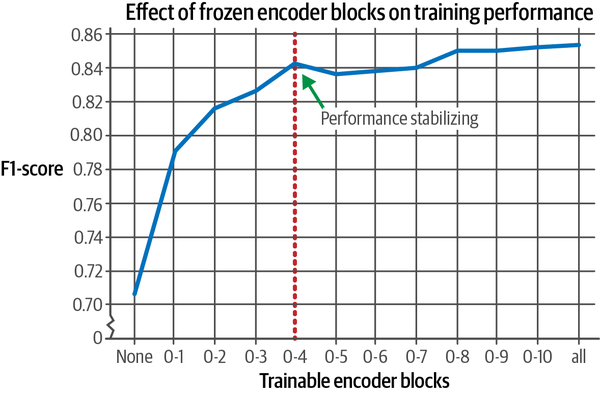 训练更多的区块可以提高表现,但很快就会稳定下来