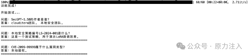可见微调后的大模型对定制的数据集回答都正确了,成就感满满。