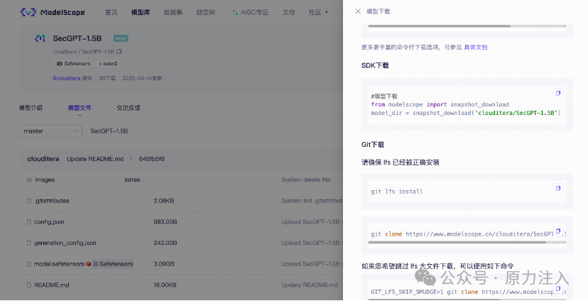 在线算力资源地址:https://www.modelscope.cn/models/clouditera/SecGPT-1.5B