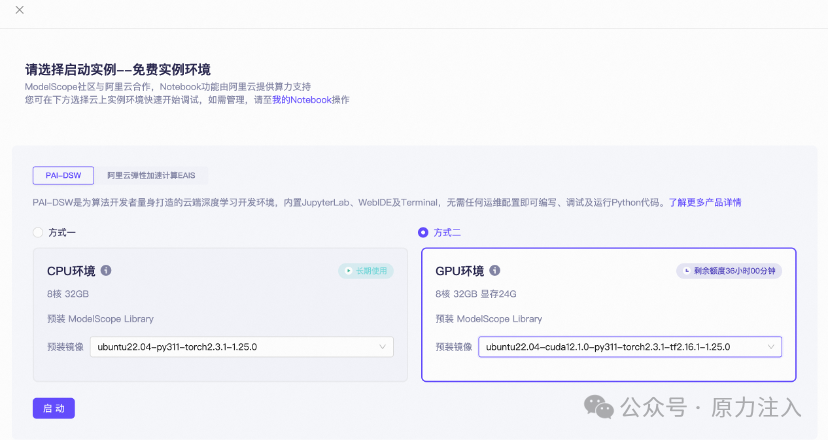 以SecGPT大模型为例,选择合适的镜像(以ubuntu22.04-cuda12.1.0-py311-torch2.3.1-tf2.16.1-1.25.0为例),启动GPU环境实例(约需2分钟):