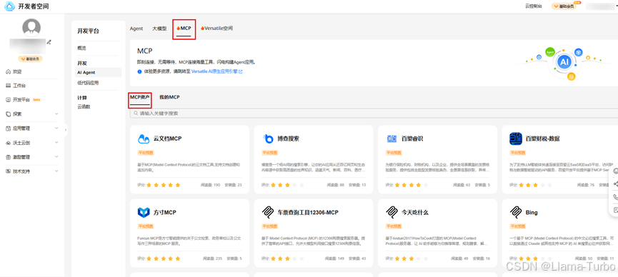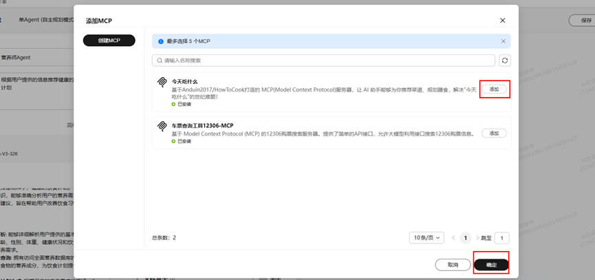 (* 注意:需要等MCP服务安装成功后,添加页面中才能检索到。)