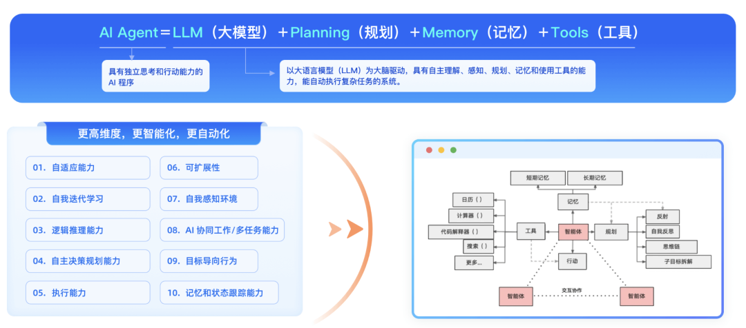 Agent 不是 Siri 的升级版,也不是 ChatGPT 的变体,而是一种“自主智能体”。它能感知环境、分析目标、自主决策并持续进化。如果说过去的 AI 是“工具”,Agent 则更像一个“数字助理”。