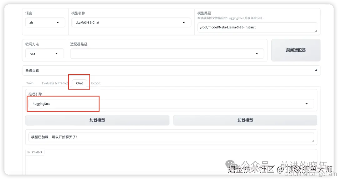 可以看到,推理引擎可选:huggingface**,vllm。我们选择huggingface,然后点击加载模型。