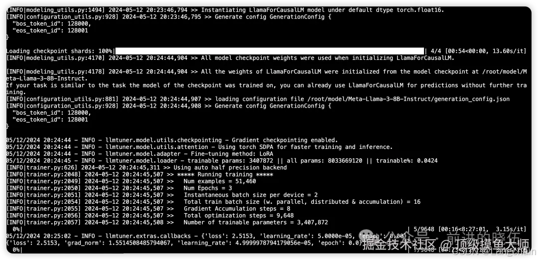 展示的就是我们微调大模型常见的超参数配置,有关于超参数的分析,会在之后的文章给大家分享。