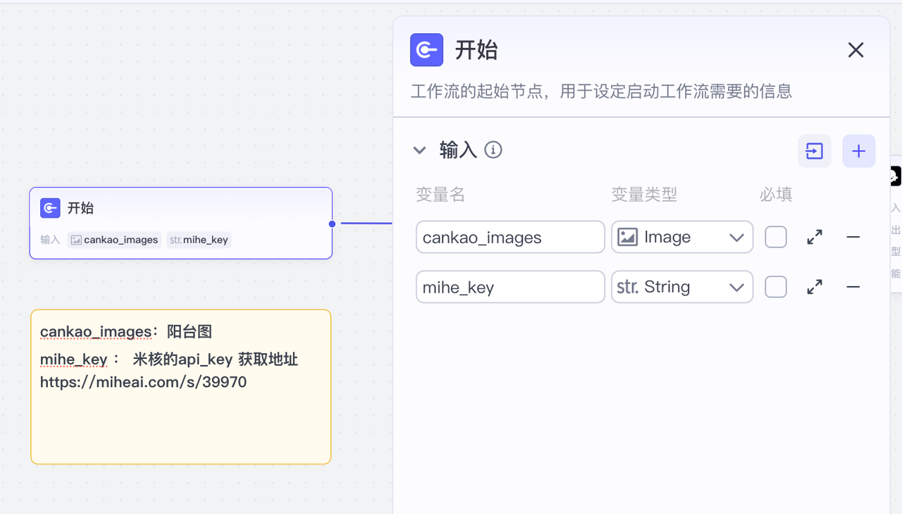 开始节点需要设置2个变量,分别如下