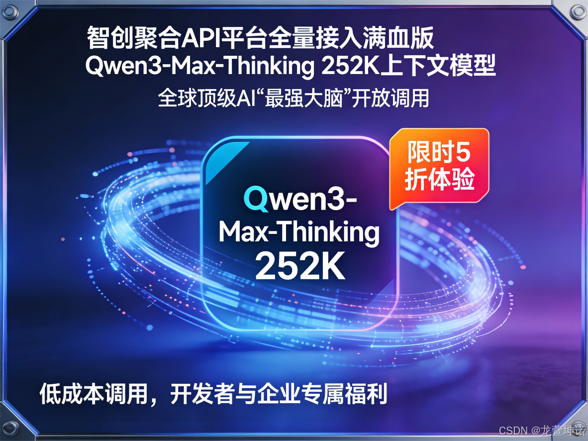 立即访问智创聚合API平台,注册并领取您的5折体验权益,让满血版Qwen3-Max-Thinking 252K模型成为您产品进化的核心引擎。