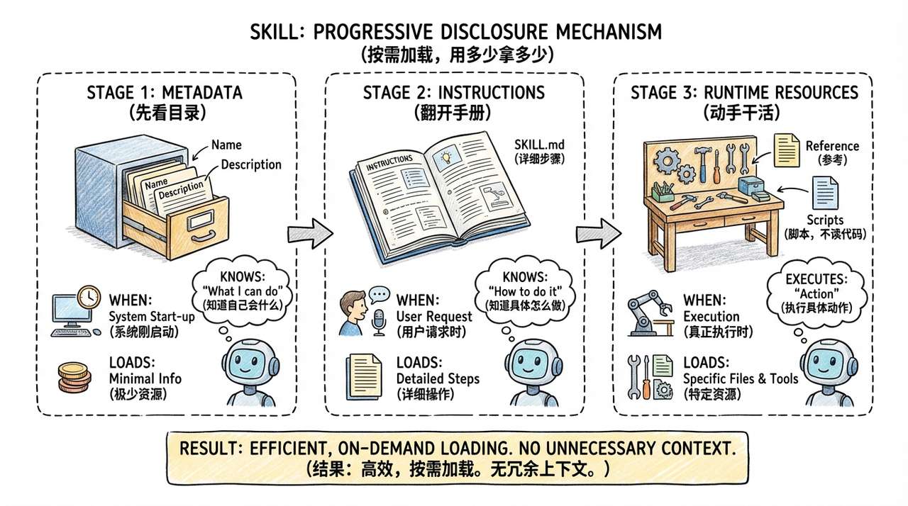 想象 Agent Skills 的渐进式批漏策略,是不是有点这个意思呢。