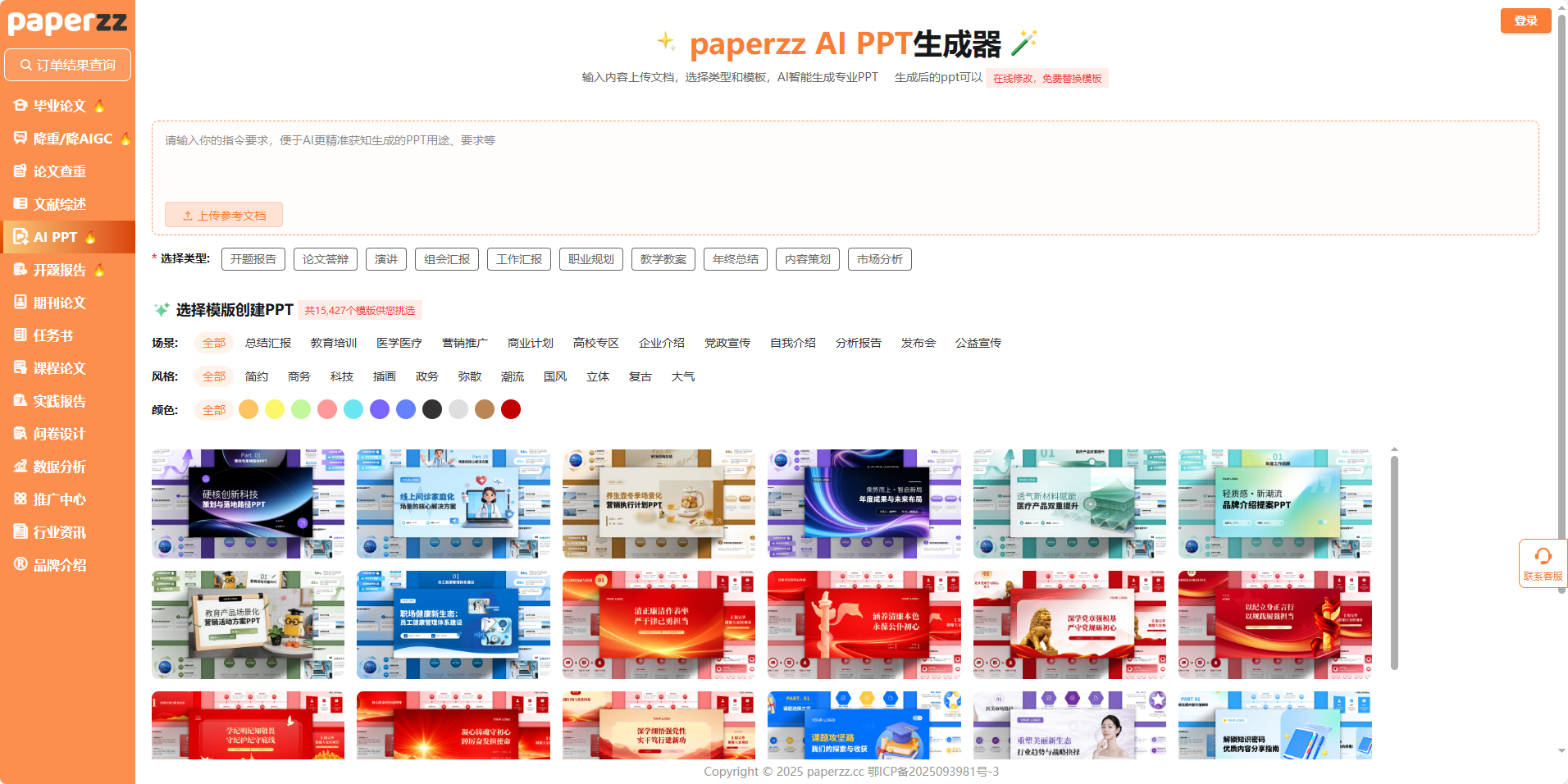 如果你还在为 PPT 熬夜赶工,不妨试试 paperzz AI PPT—— 或许它不是 “万能的”,但绝对是 “高效的”,能帮你把时间花在更有价值的内容打磨上,让每一次演示都从 “凑数” 走向 “出彩”。