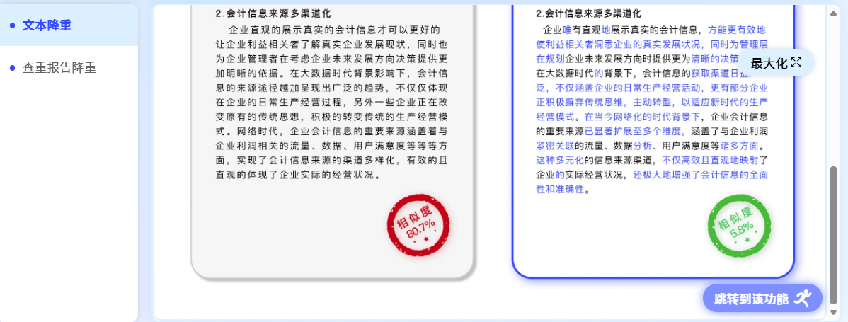 在合理利用AIGC技术的同时,如何科学评估降重效果并进一步优化?这款工具为此提供了完整的解决方案。