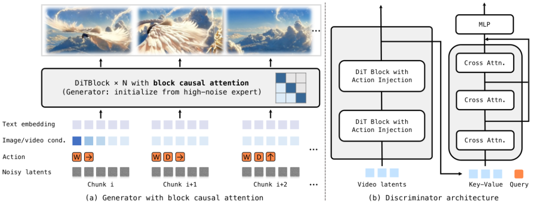这种自己教自己的方法迫使模型学会处理自身生成过程中产生的累积误差,从而在长时间的自回归生成中保持鲁棒性,避免了画面崩坏。