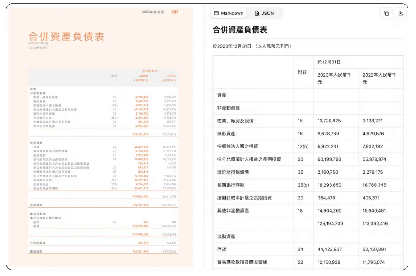复杂表格解析:针对合并单元格、多层表头等复杂结构,模型能精准理解并直接输出 HTML 代码。无需二次制表,识别结果即可用于网页展示或数据处理,大幅提升表格录入与转换效率。
