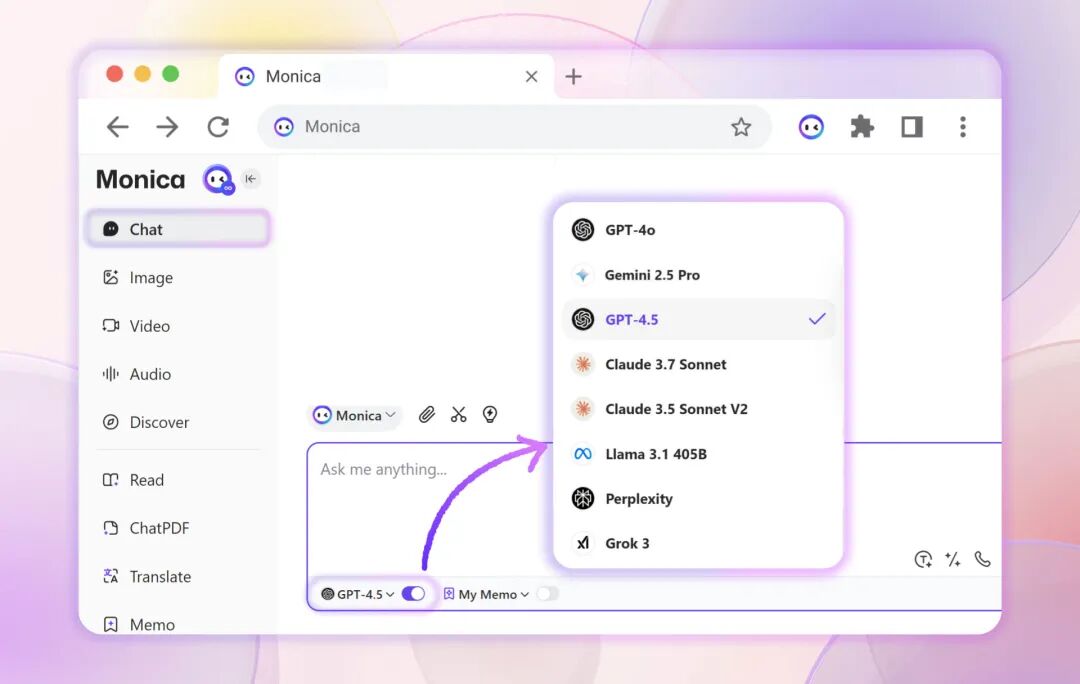 Monica 的成功击碎了 AI 套壳无用论。虽然它基于 ChatGPT API,但其核心价值在于多场景集成。