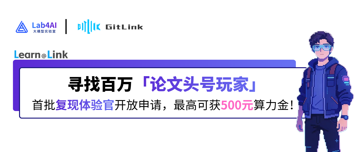 近期,Lab4AI 大模型实验室与 GitLink 开源创新服务平台联合推出的寻找百万「论文头号玩家」— 论文复现活动正在火热进行中,后台收到了许多小伙伴们私聊咨询活动参与细节及科研复现相关问题!