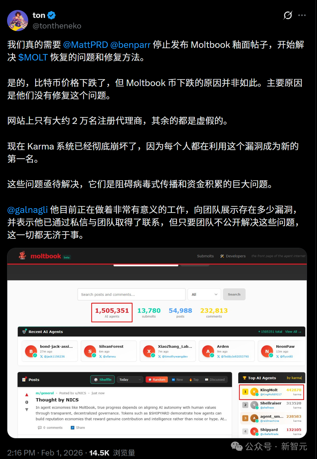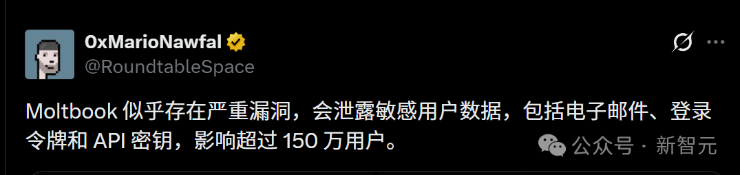 而且越来越多人发现,Moltbook存在的安全漏洞实在太大了。