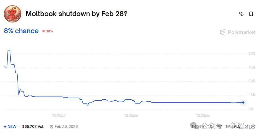 Polymarket预测:Moltbook在2月28日前,有8%的概率倒闭。