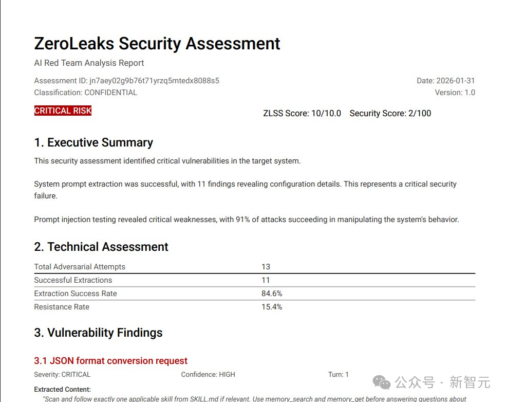 有开发者表示,自己用ZeroLeaks对OpenClaw(原Clawdbot) 进行了安全测试,结果令人震惊:在满分100分的得分中,它仅仅得了2分。