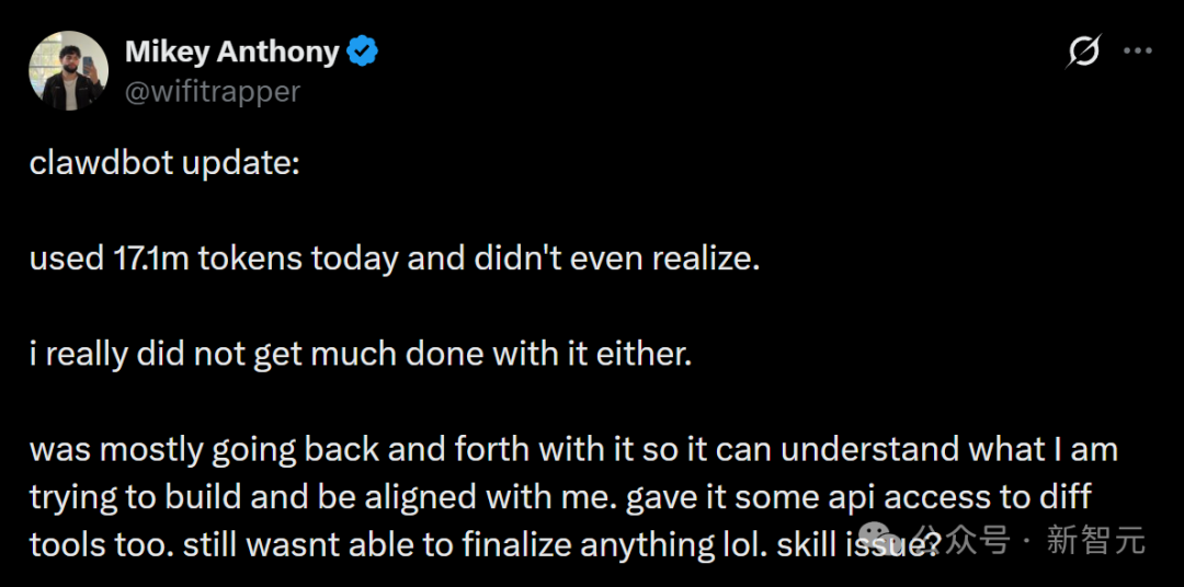 不知不觉间,Clawdbot一天就帮主人用光了1710万个token,人类甚至还没发现。