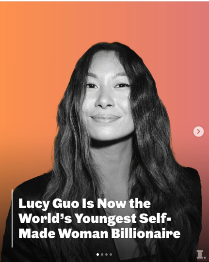 31 岁的 Lucy Guo 今年完成了一个史诗级的成就:她一度挤掉了泰勒·斯威夫特,成为了全球最年轻的白手起家女性亿万富翁。