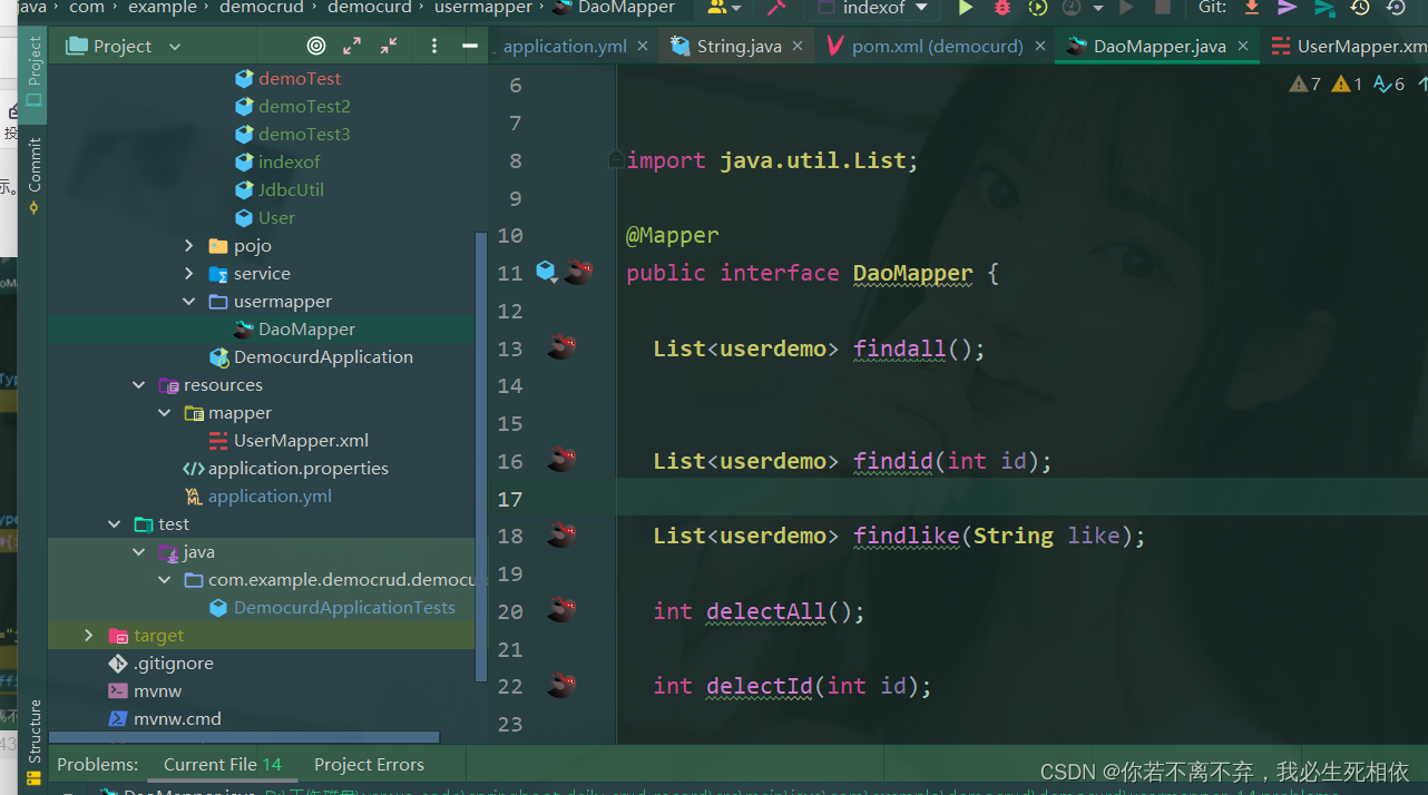 安装完成后我们会发现所有的Mapper接口和mapper.xml文件都变成了MyBatis的小鸟图标。
