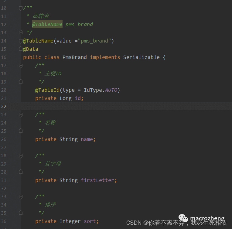 我们一般会在实体类中加入Swagger的注解,方便API文档的生成,MyBatisX默认生成的实体类是不带Swagger注解的;