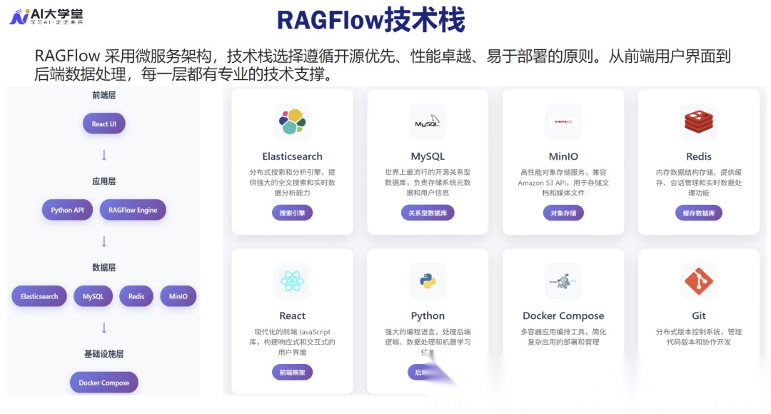| DeepDoc 模块 | 智能文档解析与切片 | Python/Unstructured | 确保输入上下文的高保真和结构化,是 RAG 质量之源。 |