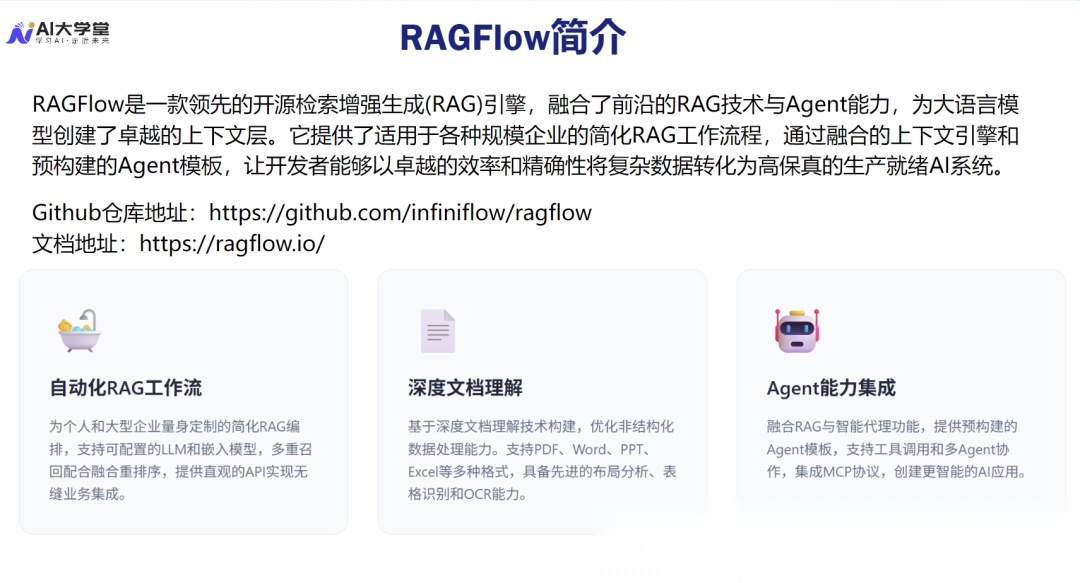 RAGFlow 作为一款领先的开源 RAG 引擎,其核心价值在于提供了一个生产就绪、可扩展、高保真的解决方案。
