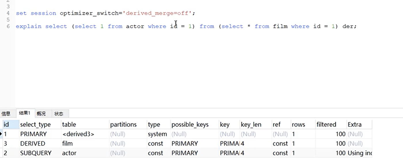 deribed3是临时表derived3,其中的3是id中的3。ID越大执行优先级越高,越小执行优先级越低。