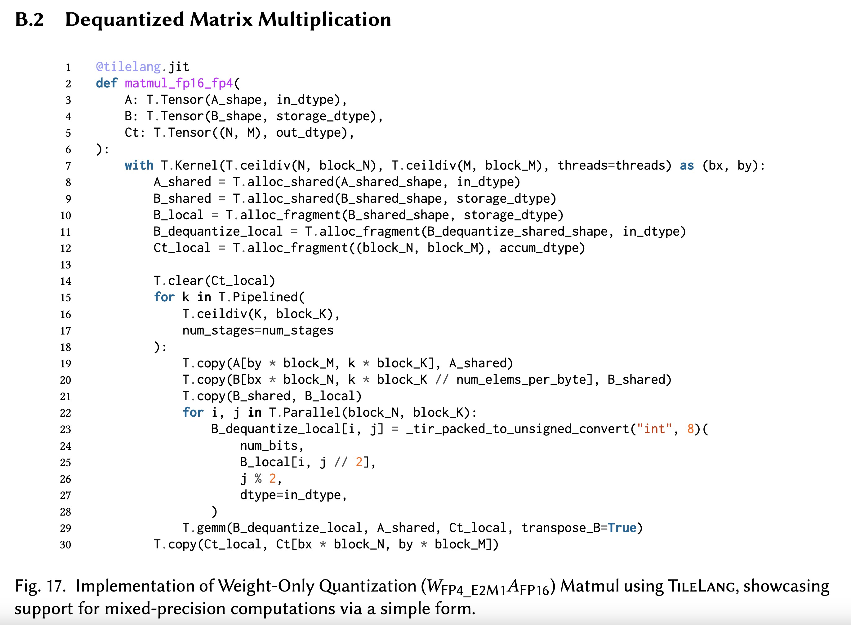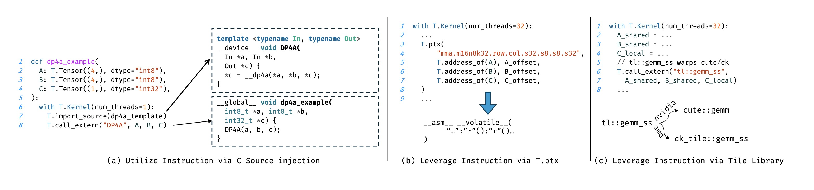 Fig. 9. Different methods of using high performance hardware instructions in tilelang