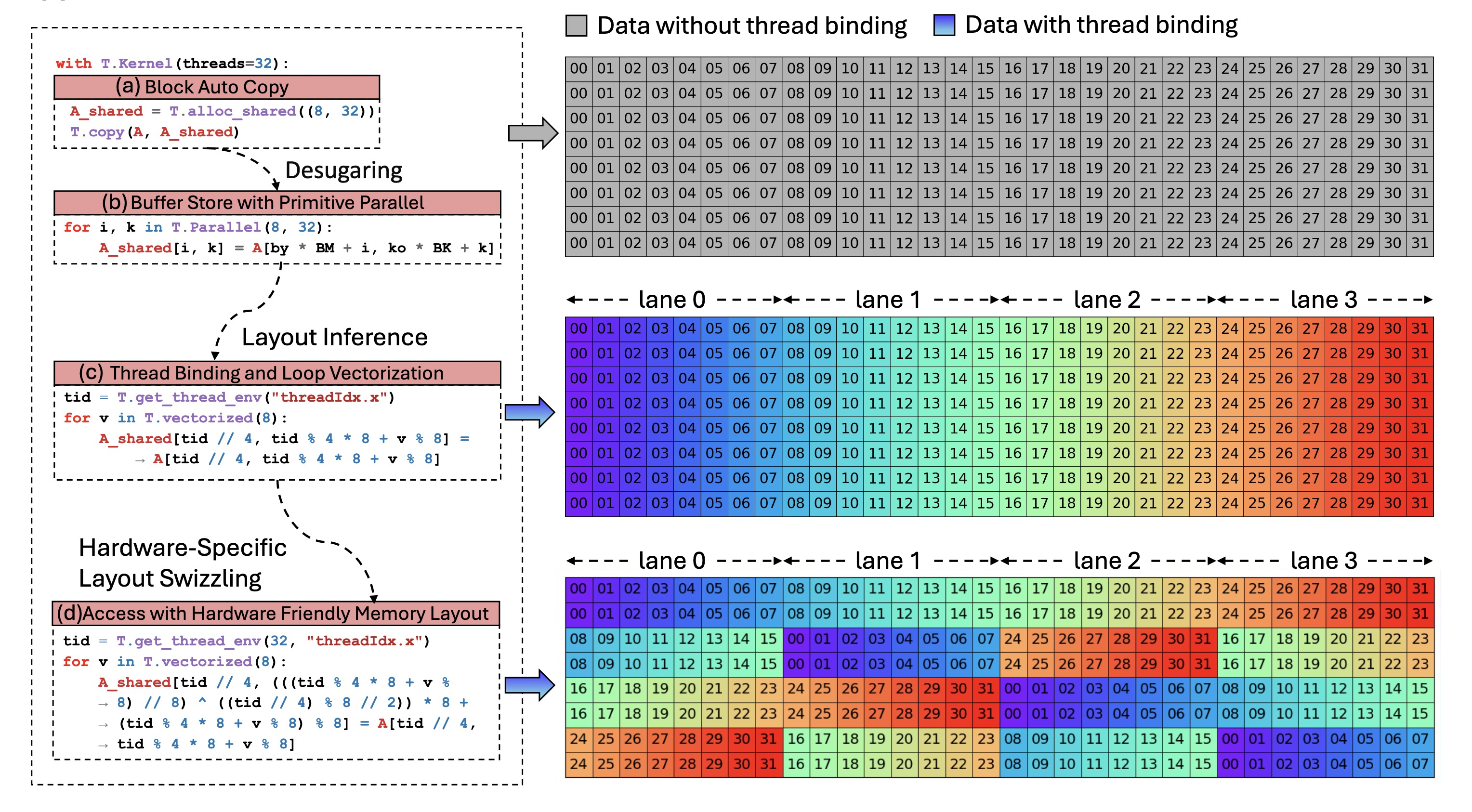 Fig. 8. Multi-Stage Automatic Thread Binding Inference for Efficient Parallel Memory Access.