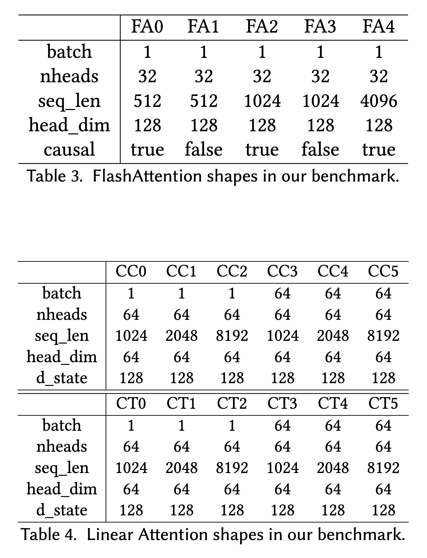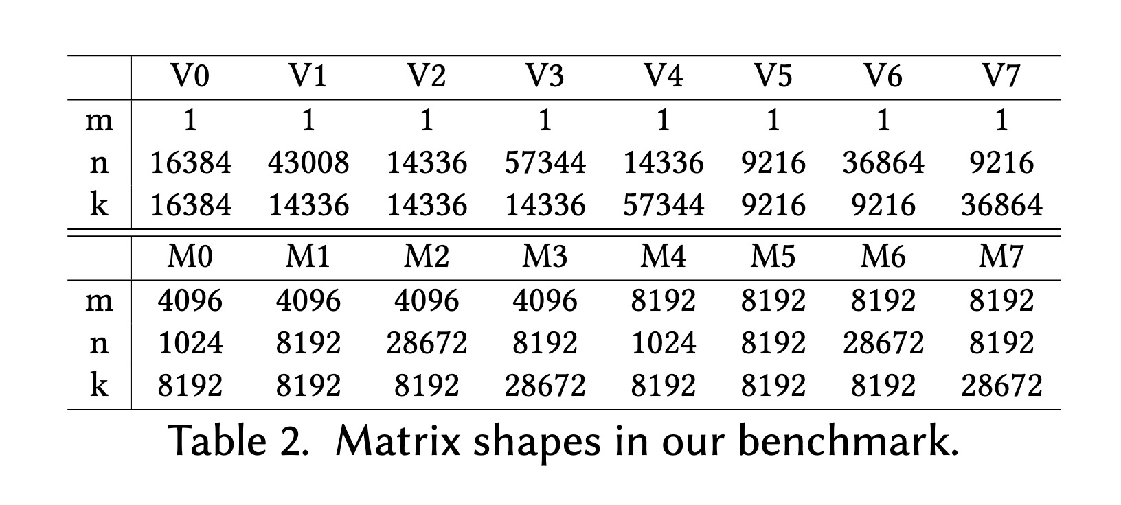A Operator shapes in our benchmark