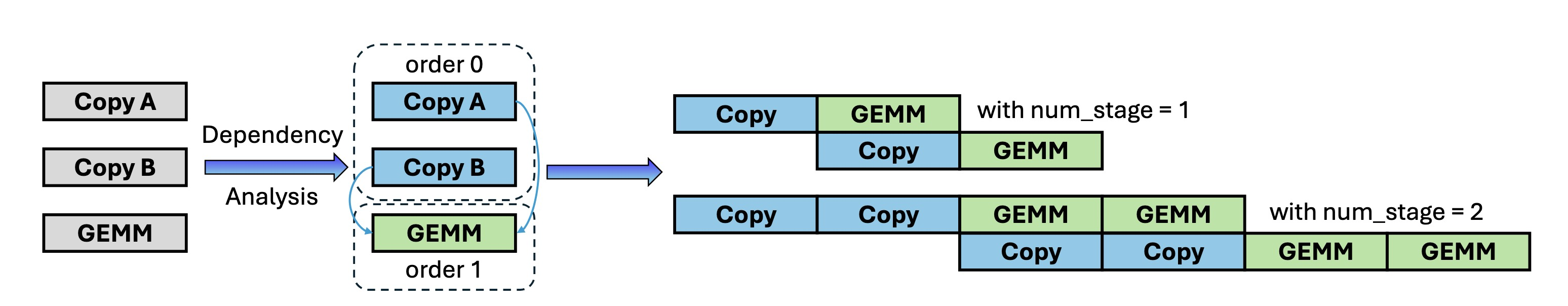 Fig. 11. Software pipeline scheduling in TileLang. This illustration demonstrates how TileLang interleaves Copy and GEMM.