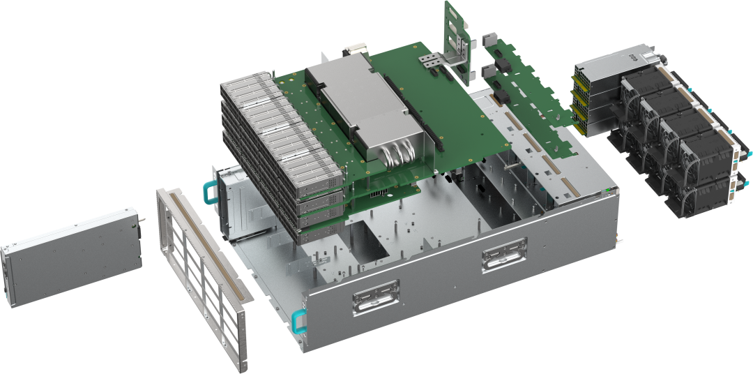 极致的风冷散热:为应对单芯片超过 1600 W 的散热压力,散热器融合了非牛顿流体材料、石墨烯导热材料与强化毛细结构,并配合系统级定向风场设计,最终实现 40℃ 环温下 1800m 海拔满配稳定运行,将风冷技术潜力挖掘至极致。