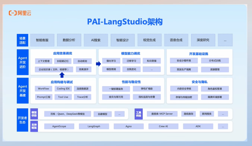 底层是模型与算力能力:包括通用大模型、垂直模型以及算力与推理基础设施