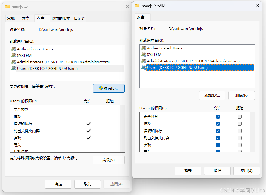 在“组或用户名”列表中,选中 Users(也就是普通用户组)。